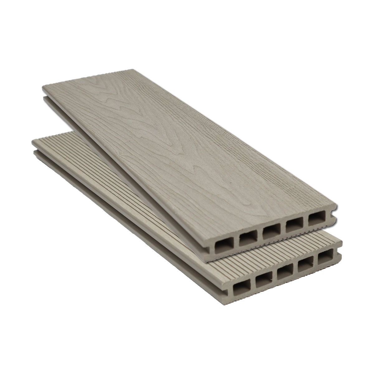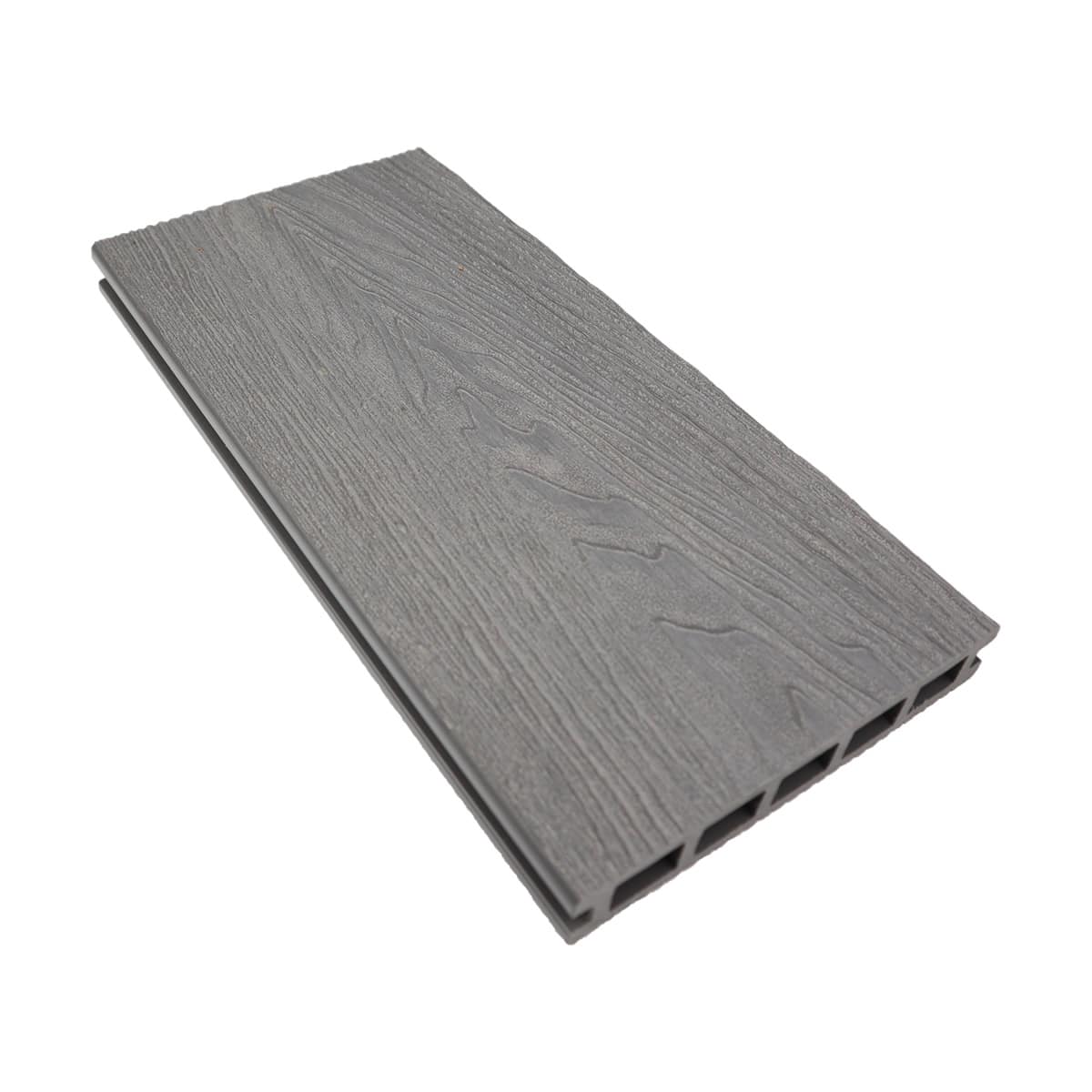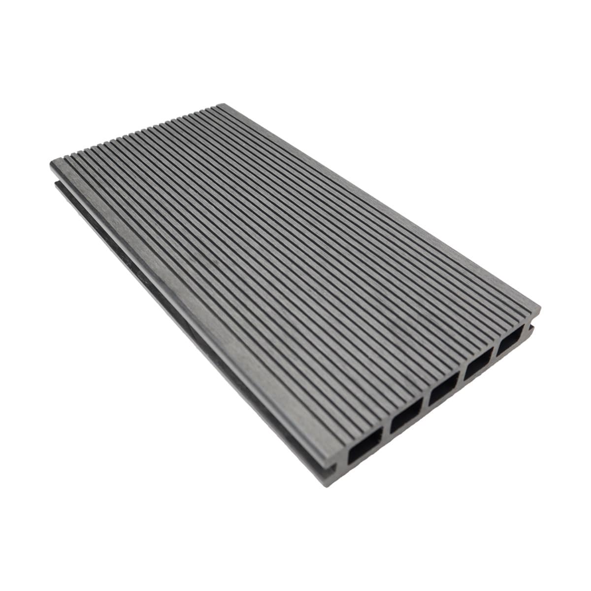 Our deck boards are designed with a dual realistic wood siding for customer desired choice of look from fully grooved bark wood to traditional ribbed effect. Available in six colours, Charcoal Grey, Light Grey, Dark Oak, Teak, Stone Grey & Jet Black. Available in 3.6m lengths, 146mm (+/- 2%) wide and 25mm thickness with purpose built fixing solutions that are designed to make installation that little bit easier.